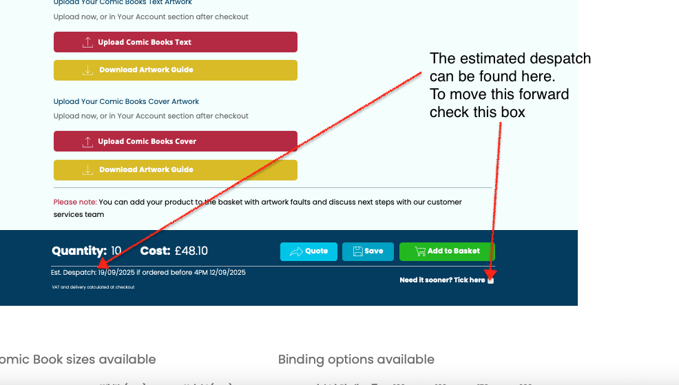 When you have placed your order, you will receive an email confirmation mentioning this estimated date. Once our team has reviewed your order, whcih may require us contacting you, we will submit the artwork into our prodcution workflow and you will receive a further email which may have a revised estimated despatch date - delays can sometiuems be caused by selecting to pay by bank transfer, or if your artwork has some issues which need to be resolved.