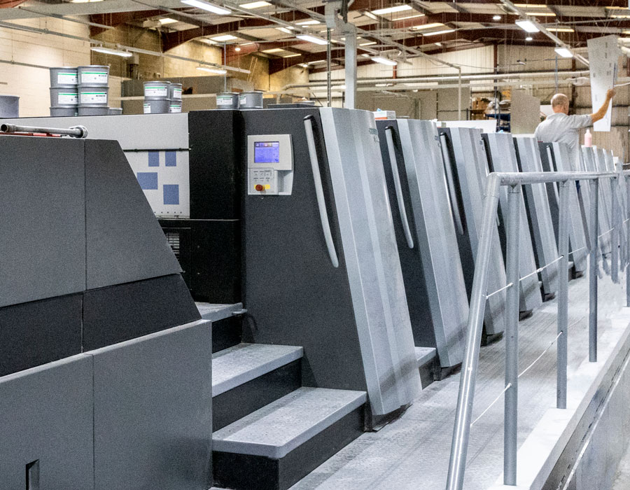 We use Heidelberg XL-106 presses. The Heidelberg Speedmaster excels in industrial-scale printing, delivering consistent, high-quality results every time.